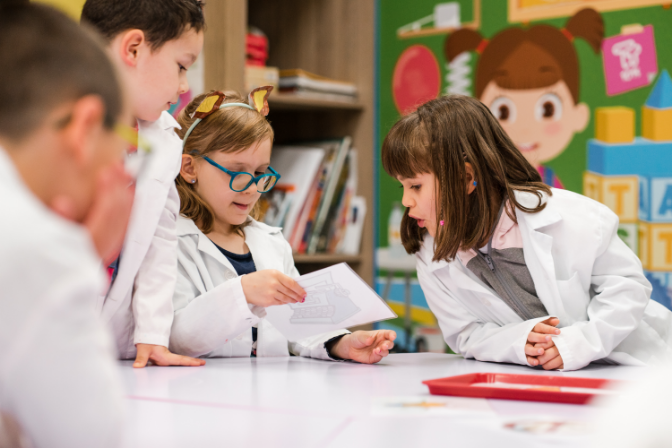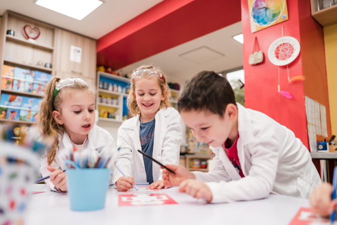 Fun is guaranteed with our Tinker chemistry lab. We entertain the children with test tubes, measuring cups and chemical experiments.